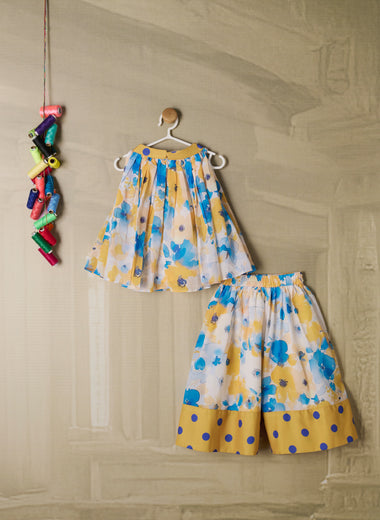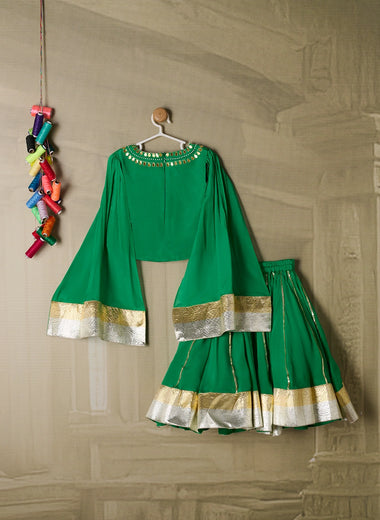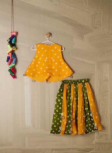 YELLOW AND GREEN DUAL SHADED BANDHANI KALI SET