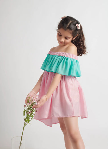 CLASSIC PINK AND GREEN ORGANZA FROCK