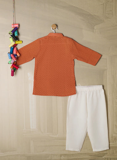 BLOCK PRINTED BLUE AND ORANGE KURTA SET