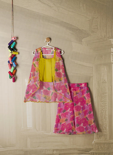 YELLOW AND GREEN DUAL SHADED BANDHANI KALI SET