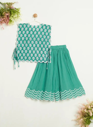 SEA GREEN PALAZZO SET WITH FLORAL YOK