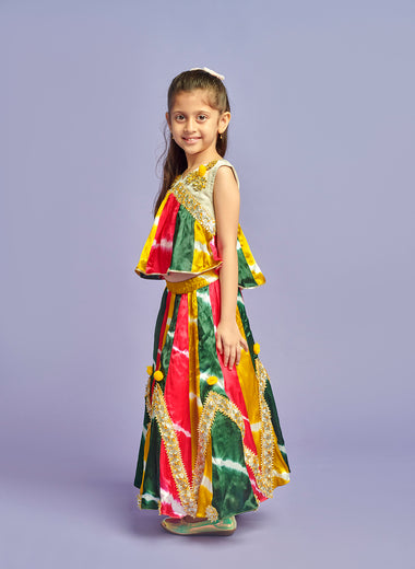 Multi Colored Hand Embroiderd Mirror Lengha Set