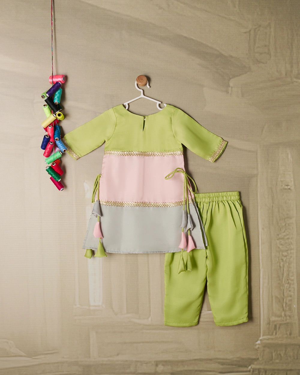 1. TRI COLOR BLOCKED SUIT DIVIDED BY GOTA BORDER