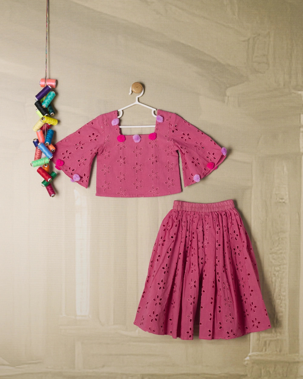PINK HAKOBA POM POM CORD SET