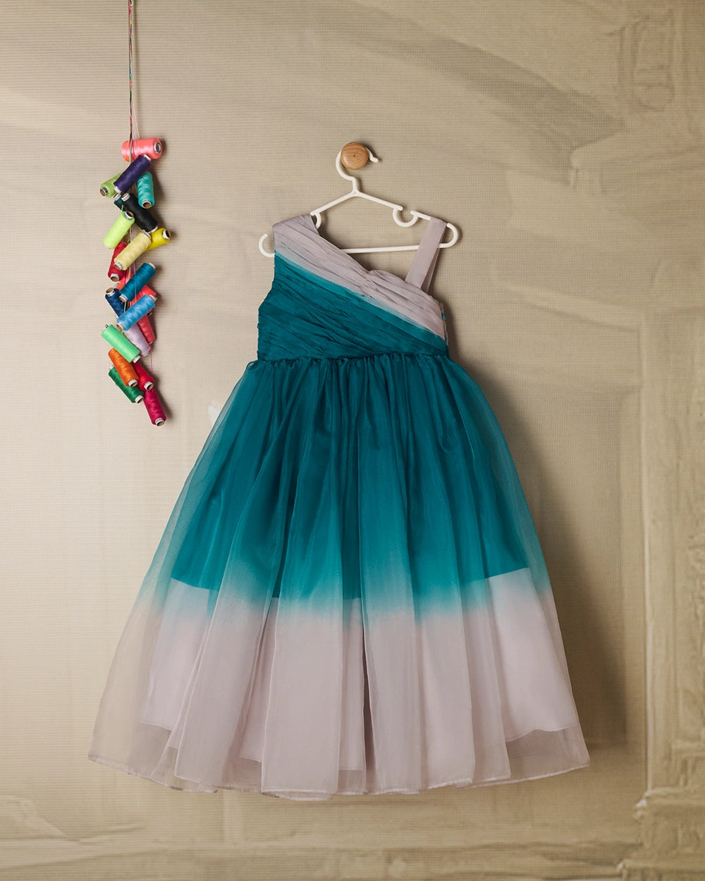 EMRALD GREEN AMND GREY SHADED ORGANZA GOWN